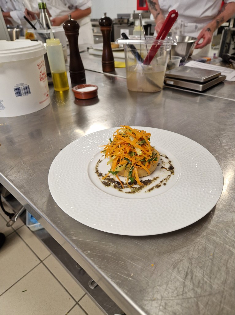 The task for the afternoon was to prepare a Tarte au confit d’oignon et tapenade, légumes croquants.