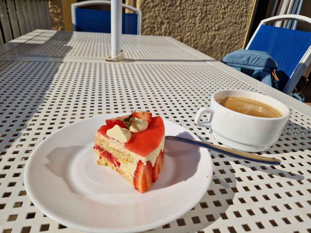 This actually wasn´t too hard either, even without a partner like E. The endives were cooked sous vide which I can do at home and the making of the filling was mostly an exercise in chopping things finely. Again, though, chef is using the chicken leftover from making the stock for the risotto: nothing can be wasted if you want your restaurant to make a profit. The mousse was from a siphon; it’s collapsed a little as I had to wait a while for chef to pass comment (he was quite pleased, but gave me my message to myself from last Friday: there are times to move quickly, but also times to take one’s time to do things well). I’d probably skip the mousse if I made this at home; like much of the patisserie, it needs to be made in quantities—we made ours with the table opposite. But maybe not; I just need to find a supply of xantham powder and professional size gelatine sheets, not the small things you find in the supermarket.