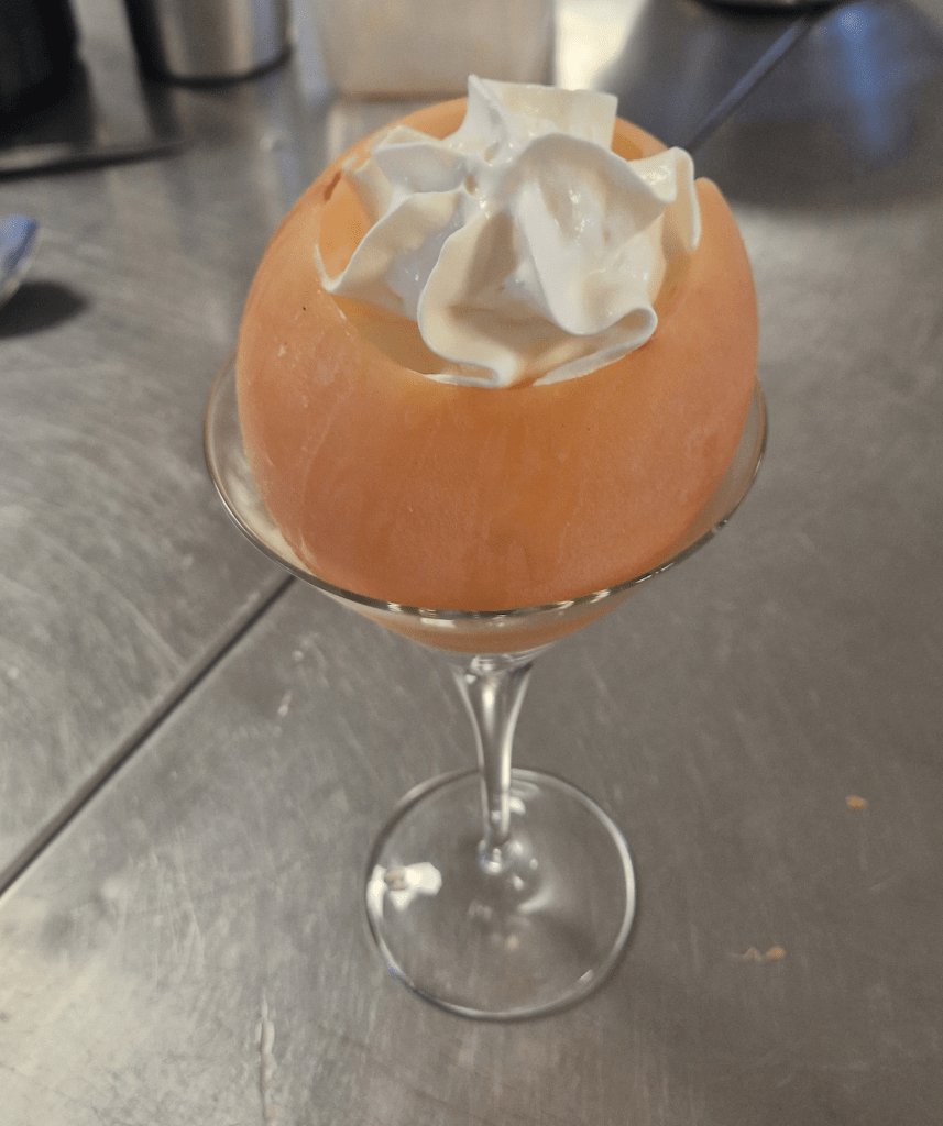 There’s enough for us all to have a taste and more than enough sorbet, ice cream, orange sponge and campari/orange mix to go round as we finish the day with a celebratory glass of champagne.