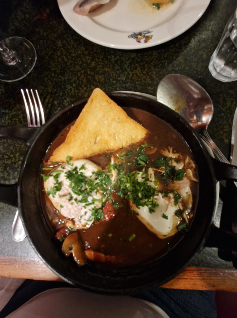 The oeufs en meurette are as delicious as I’d hoped. J. considers the yolks a little too runny but appreciates the sauce.