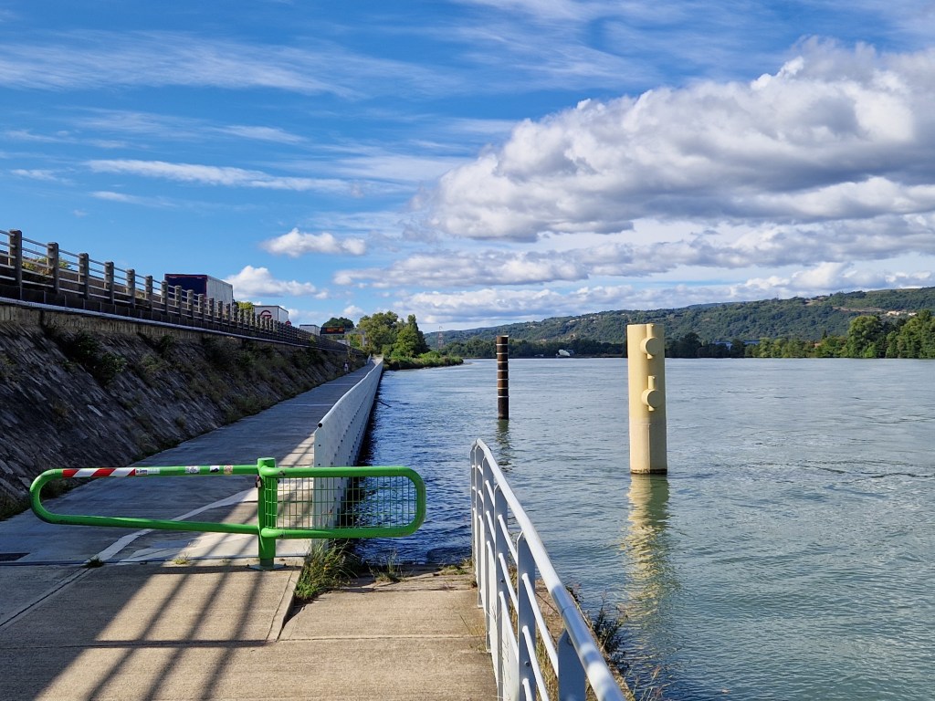 The Via Rhôna route has changed in Valence. Right as you arrive, the cycle path weaves through what looks to be a newly created park and then I’m guided (with no complaints about the signage!) not to the railway station where the Wells route ends, but to the northern side of Parc Jouvet and under the A7 to the Rhône.