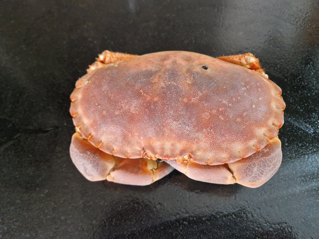 I’m not going to show a picture of the bench after extracting the meat from the cooked crabs, It was, not very surprisingly, a mess. That’s doubtless why there is so much more to be found on cooking lobster—easier to cook but not, I’m convinced, tastier than crab. Sadly, the hot dressed crab recipe I went for wasn’t the most convincing. I only got 250g of meat from the two crabs rather than the 400g the recipe suggested you could get (I’m a novice, after all) but even after scaling the other ingredients down the crabness struggled to shine. Not a bad dinner, though, with watercress and after a potted shrimp starter.