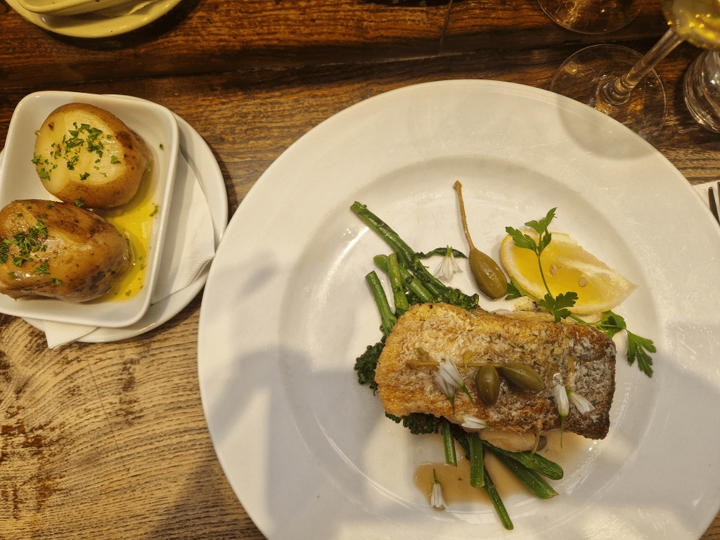My luck continues with dinner. I’m not too hungry, but I need something to eat and there’s an interesting sounding burger place which would be fine. It’s Saturday, though, and I can’t either book a table or get someone to pick up the phone. It’s far enough away (the hotel was chosen for parking convenience) that I’m not willing to walk and be disappointed so, as dining options are scarce nearby, I settle for fish and chips in the bar. The highlight of which is the view.