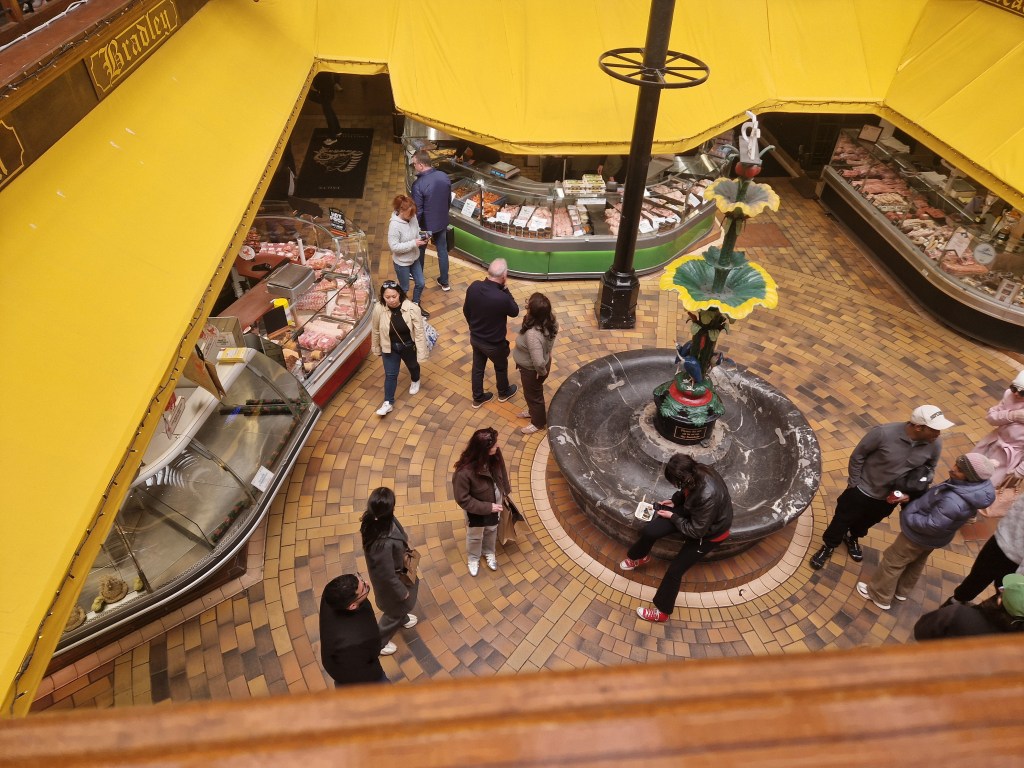 but it’s gone 1pm by my body clock when I arrive at the hotel and I’m pretty hungry, so off to the Farmgate Café at the English market where, after a little wait, I’m seated at the balcony with a view of the goings-on below as I eat the fish-of-the-day offering.