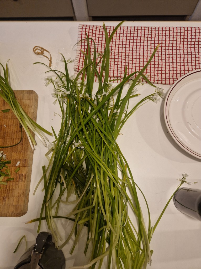 There’s enough to share with my fellow housemates but I’m not convinced it’s the best use. As J. comments, it’s a shame we have no parmesan as otherwise we could have made pesto with it. And, indeed, I see that wild garlic pesto is one of the recipes to be demonstrated tomorrow afternoon. Whatever, a foraged meal putting to use knowledge I’ve learned today. Let’s hope the remaining 83 days end so well…