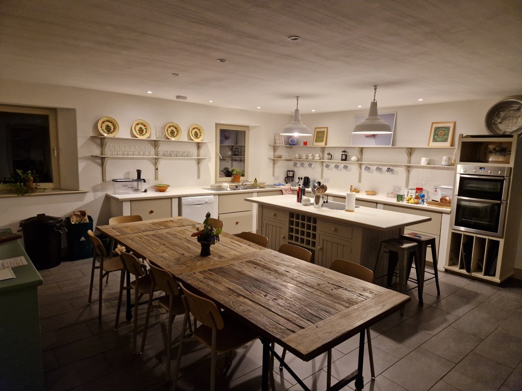 I wake up on French time again and am beginning to think this will be a good routine as it will give me time for breakfast etc before any of the possible activities in the Bread Shed or Fermentation HQ (a couple of keen folk walk past the window in their whites as I’m in our kitchen in my dressing gown…). And talking of our kitchen, it’s pretty large: