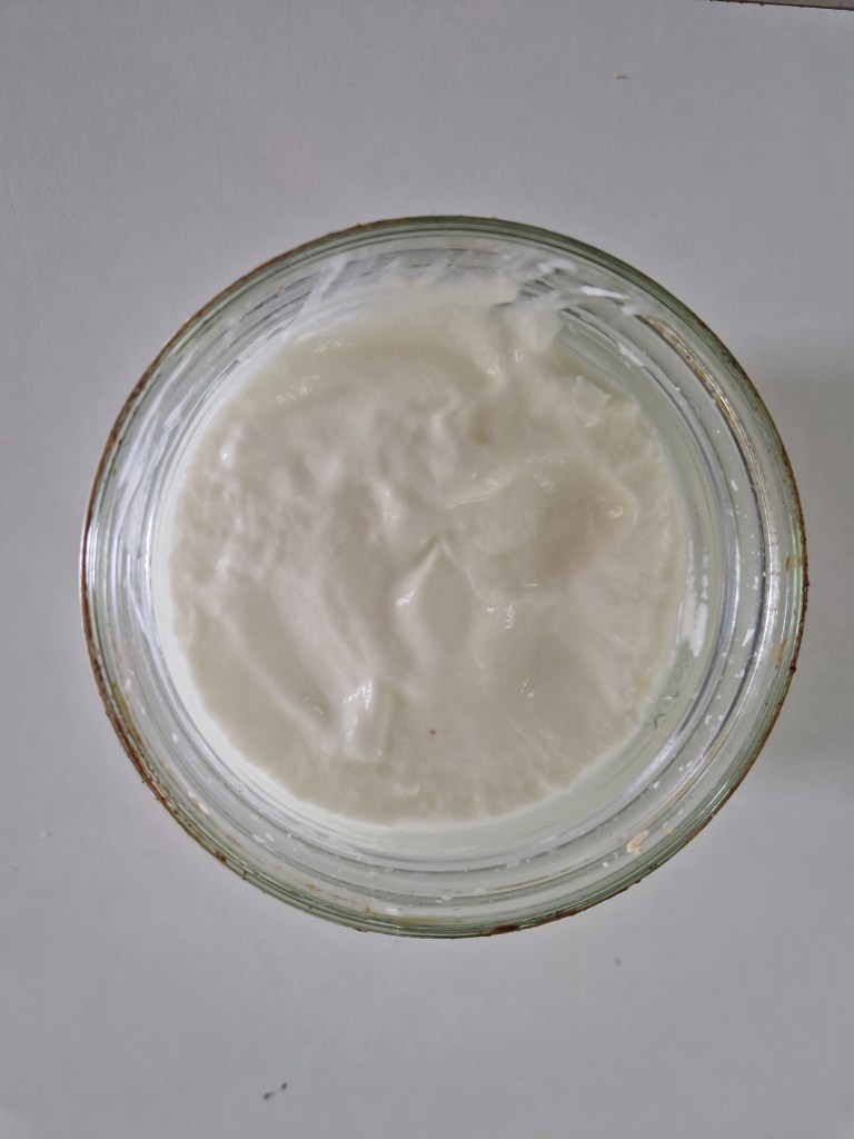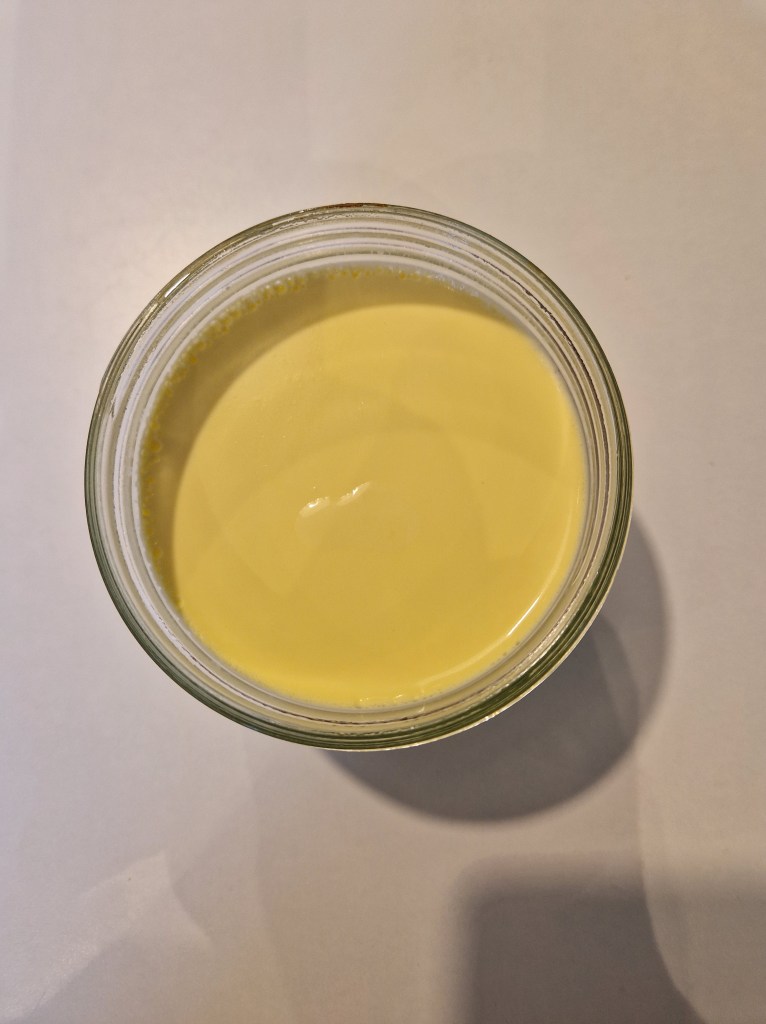Checking on the yoghurt first thing this morning, it is very yellow!
